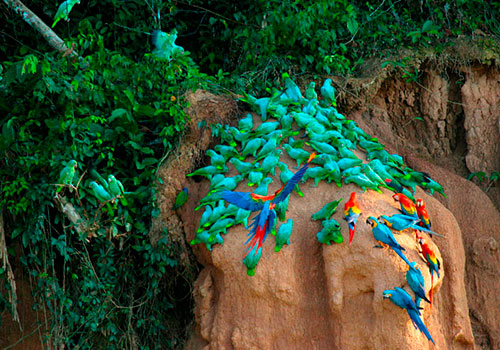One of the most beautiful and endemic birds of South America is found in our country, you will be able to observe them in licks near our lodges.